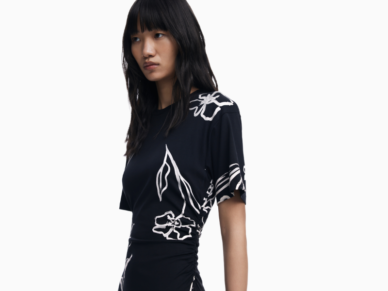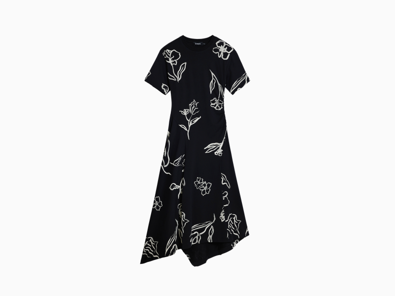 ASYMMETRIC DRESS WITH FLORAL STROKES