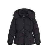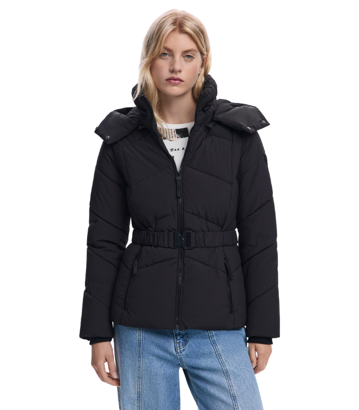 Kort vattert jakke med figursydd passform og avtakbar hette for en fleksibel stil. Designet med glidelåslommer foran og avtakbart elastisk belte som fremhever midjen. En moderne og funksjonell jakke som kombinerer varme og et stilrent, urbant uttrykk.