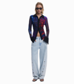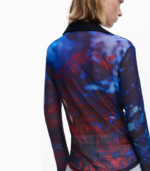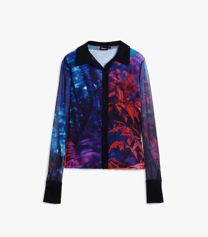 Langermet tullebluse med et livlig Arty-print i røde og blå nyanser. Blusen har brede mansjetter, klassisk skjortekrage og knappelukking foran som gir et moderne og elegant uttrykk.