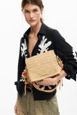 Medium raffia bag with charms