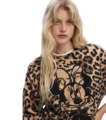 Lett genser med rund hals og lange ermer, dekorert med et lekent dyreprint og brodert Minnie Mouse™-motiv på forsiden. Den kombinerer et feminint uttrykk med et ikonisk Disney™-preg.