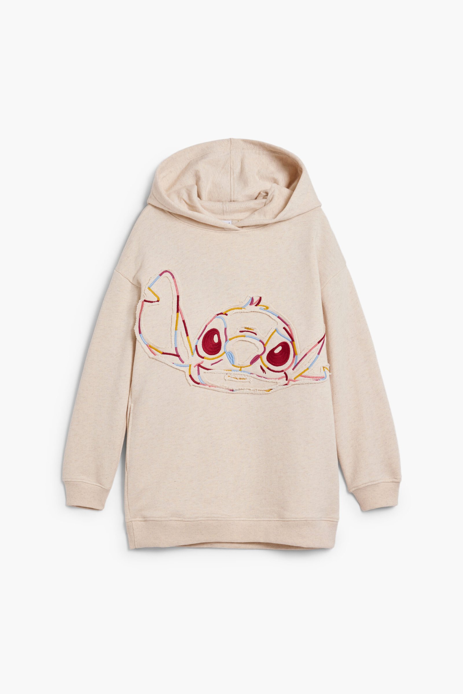Langermet kjole med sweatshirt-inspirert design og brodert Stitch™-patch med frynseeffekt. Modellen har hette og elastisk avslutning nederst og på mansjettene.